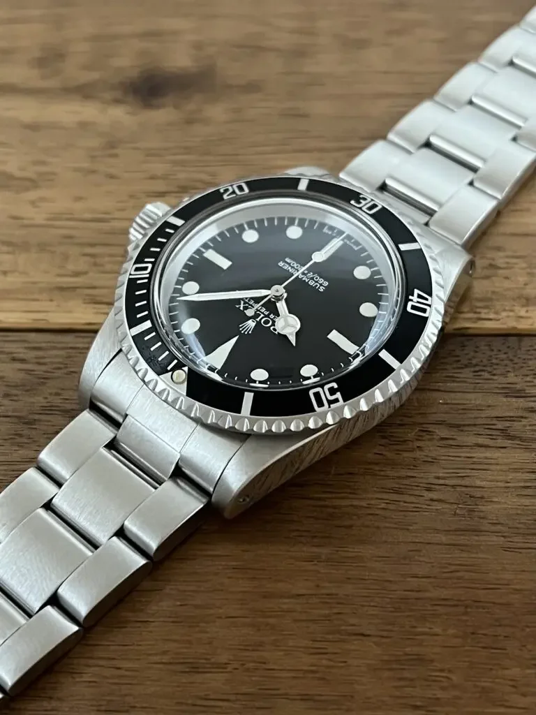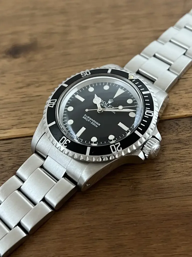 The lightly polished case with full and even lugs with almost no signs of use. The black insert shows no scratches or dings. The bracelet is a later (1982/3) Rolex 93150 with 580 end links in excellent condition, 12 links included, with minor stretch from use. Bracelet clasp code is G.